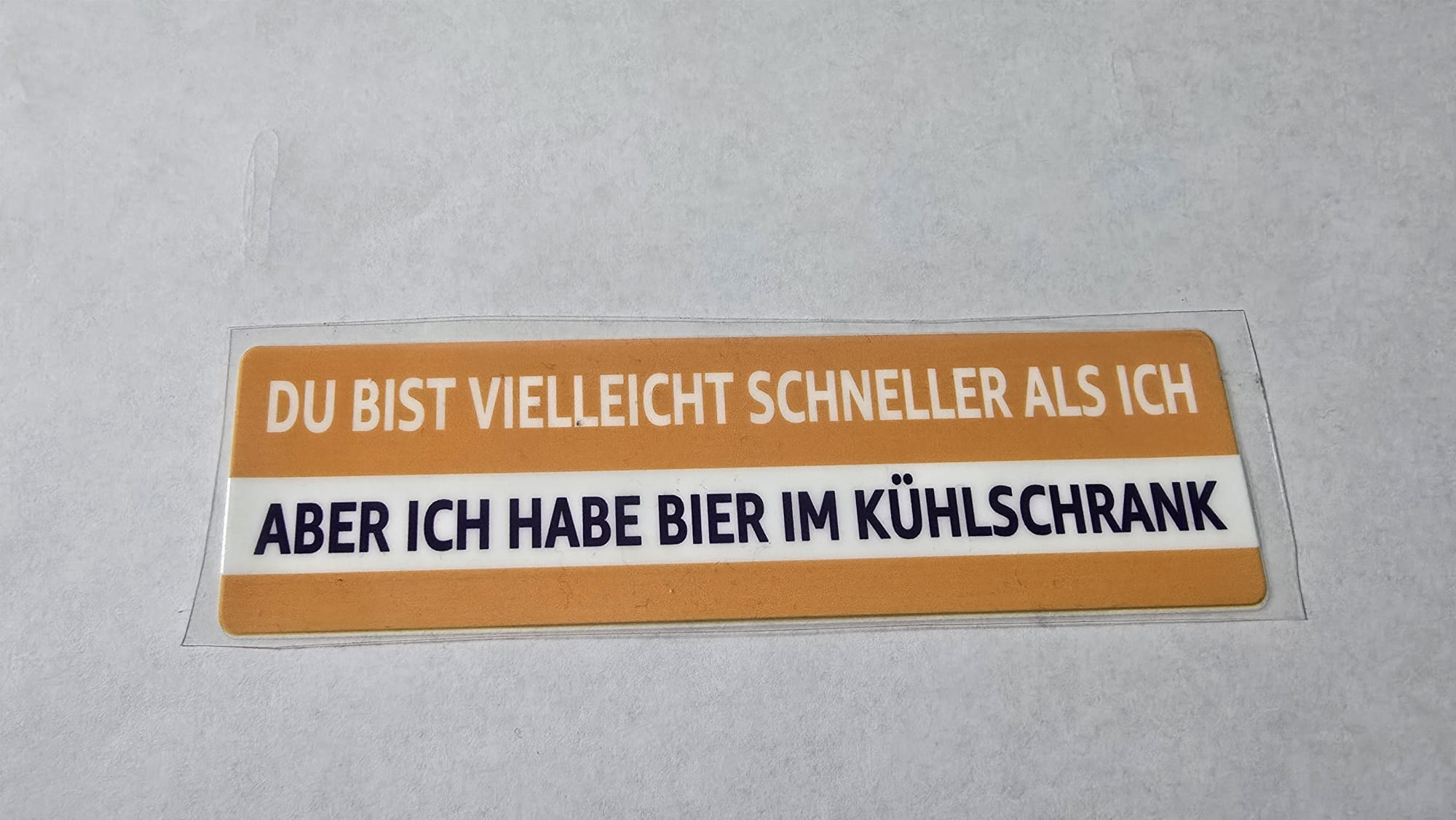 FUN Sticker – „Du bist vielleicht schneller als ich, aber ich habe Bier im Kühlschrank“