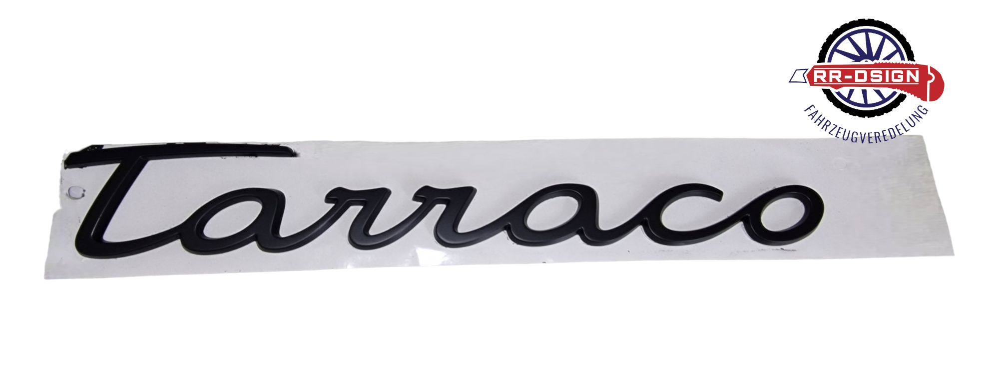 Der Tarraco Schriftzug, geschwungen und lackiert, verleiht Fahrzeugen einen Hauch von Luxus und Individualität.